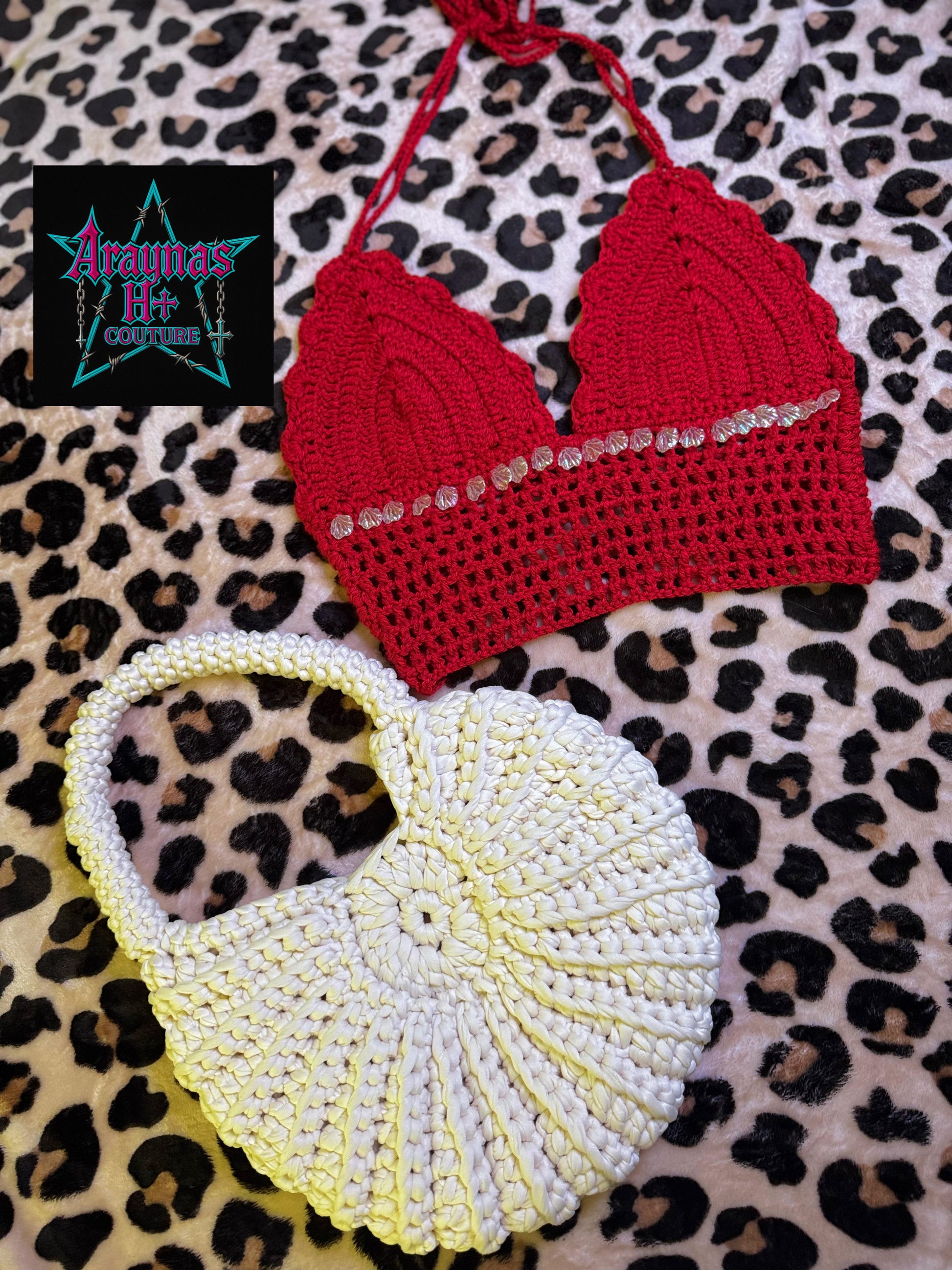This is a combination of our shell bag and a mesh top inspired in island girls with little shells in the top. This combo it's ready to bring you the best summer outfit ever.